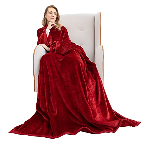 OIGAE Wearable Blanket with Sleeves & Foot Pocket for Women Men Adult