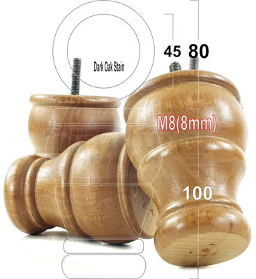 4x WOODEN BUN FEET DARK OAK STAIN REPLACEMENT FURNITURE LEGS SOFAS