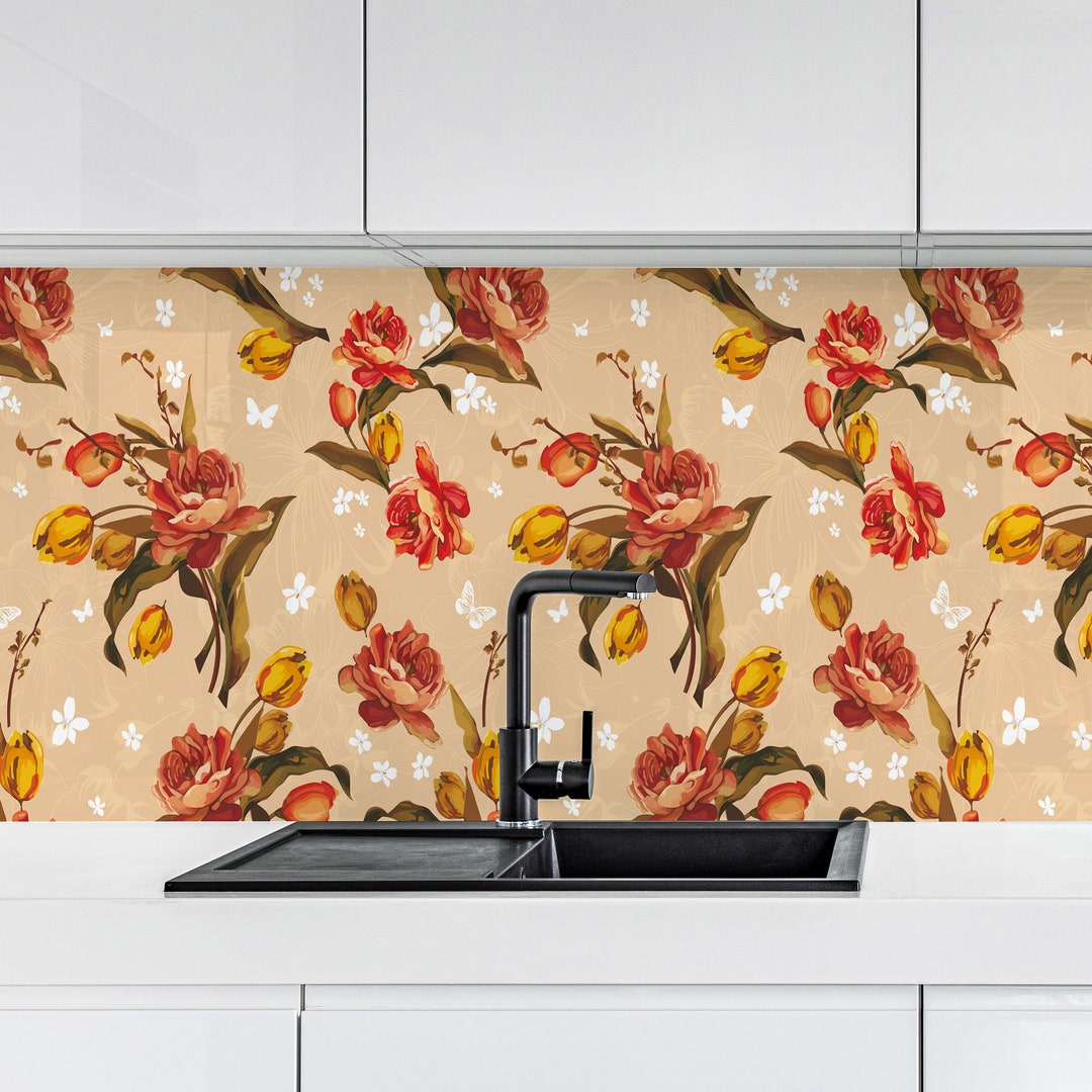 Floral Kitchen Tile Sticker, Peel and Stick, Kitchen Tile Decal