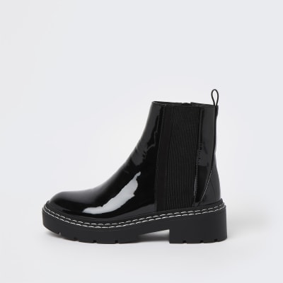 Black wide fit patent ankle boots River Island