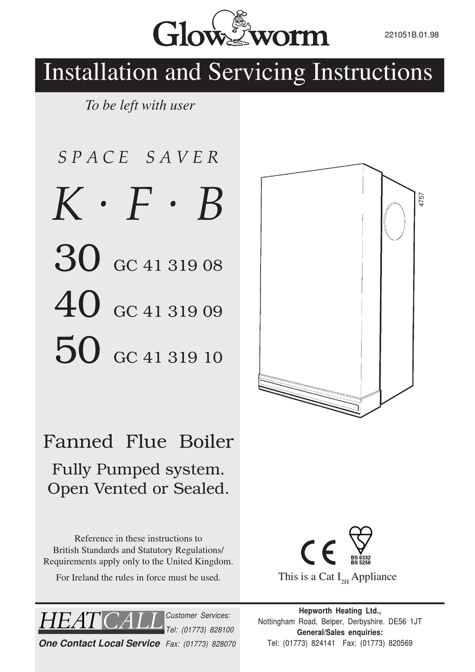GLOWWORM SPACE SAVER KFB 30 INSTALLATION AND SERVICING INSTRUCTIONS