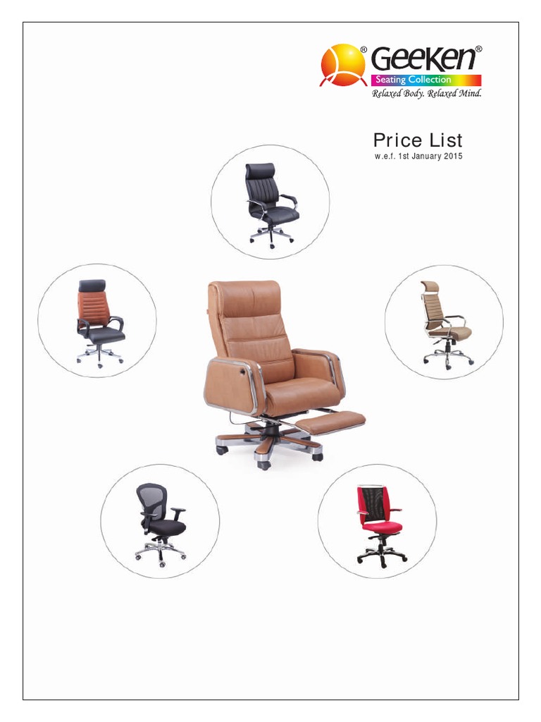 Geeken Chairs Price List Jan 2015 PDF Chair Pipe (Fluid Conveyance) Geeken Chairs Price List 2021 buy products online at best price in india. Check each product page for other buying options. geeken seating collection has in its portfolio a large number of modular workstations, office desks, conference table, wooden. Geeken Chairs Price List 2021.