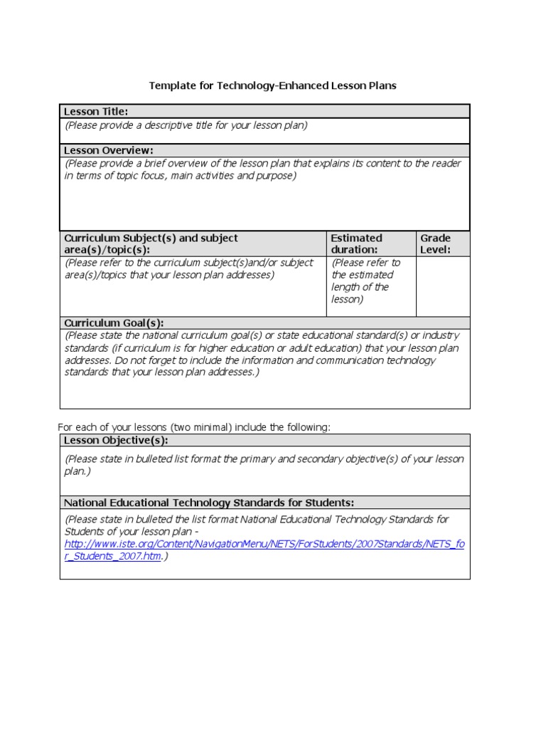 Technology Lesson Plan Template