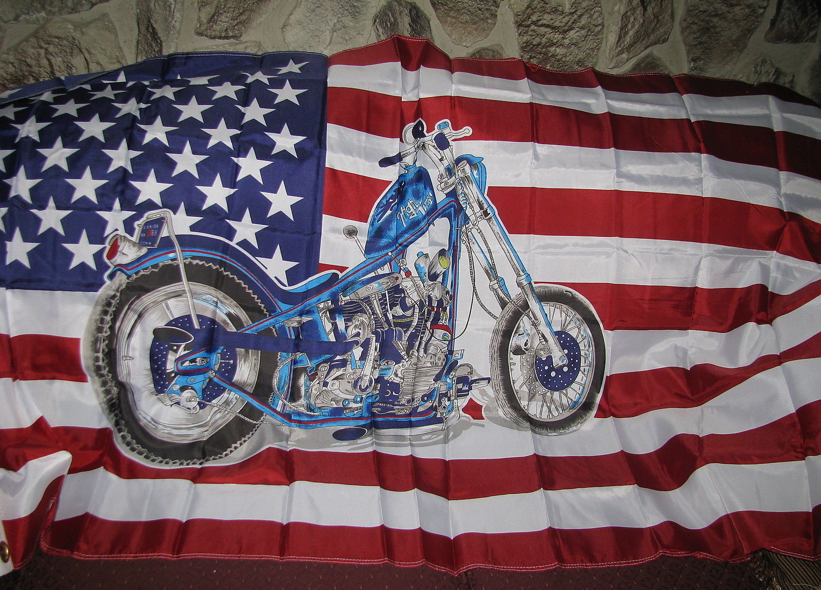 A Beautiful American Flag with Picture of a Motorcycle cycle Bike Biker