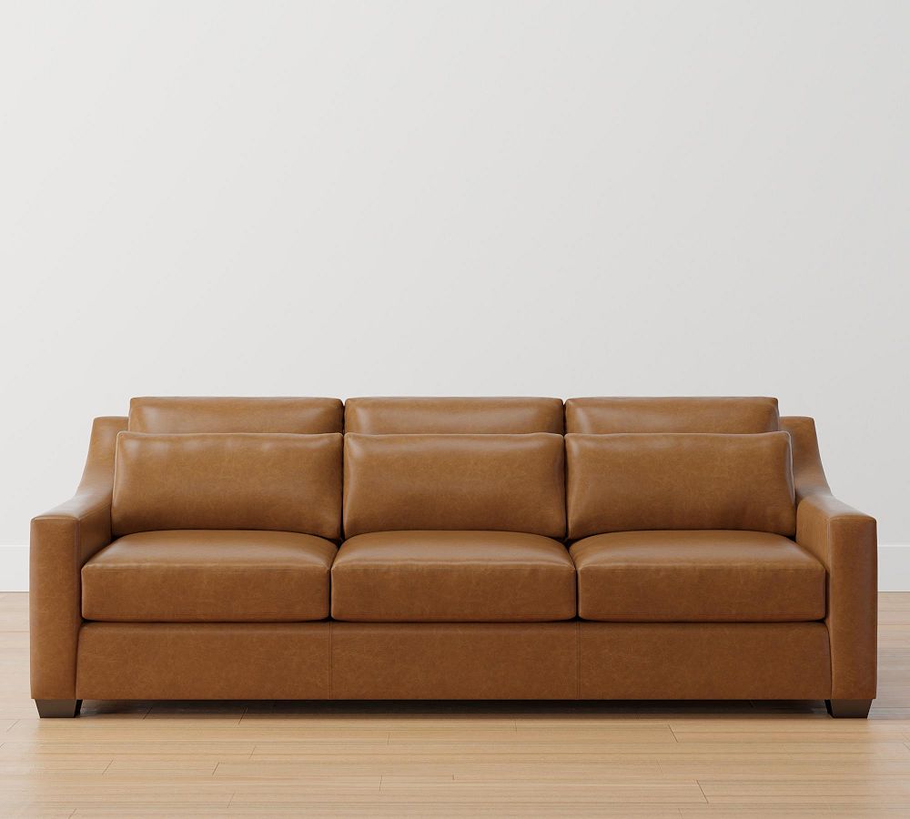 York Deep Slope Arm Leather Sofa Collection Pottery Barn