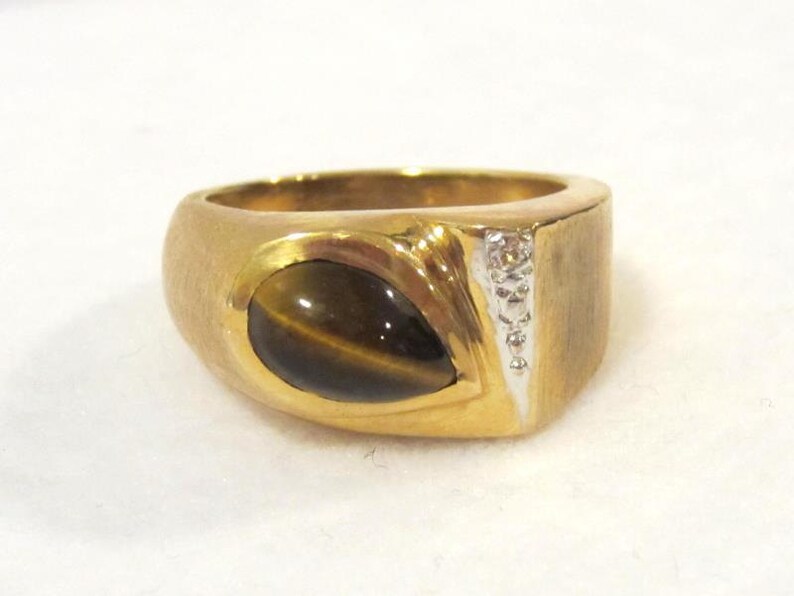 Vintage Mens Tigers Eye & Diamond Ring Size 9.5 Weight 5.4 Grams 10K Mens Gold Ring Tiger Eye Check out our mens vintage 14k gold tiger eye ring selection for the very best in unique or custom, handmade pieces from our statement rings. Check out our mens tiger eye gold ring selection for the very best in unique or custom, handmade pieces from our signet rings shops. 14k yellow gold 1/3 carat round diamonds natural tiger's eye. Gemologica. Mens Gold Ring Tiger Eye.
