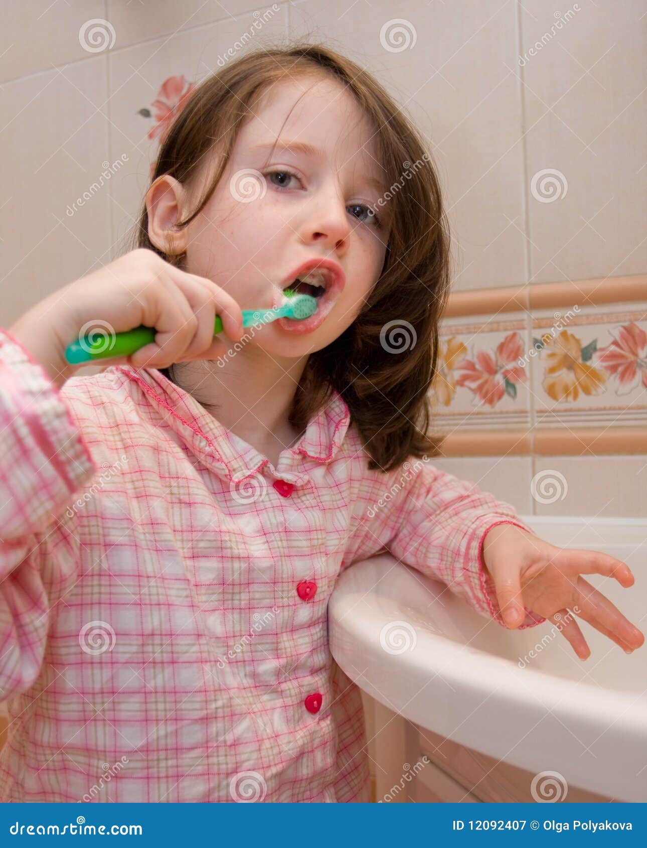 Girl brushes teeth stock image. Image of girls, caucasian 12092407