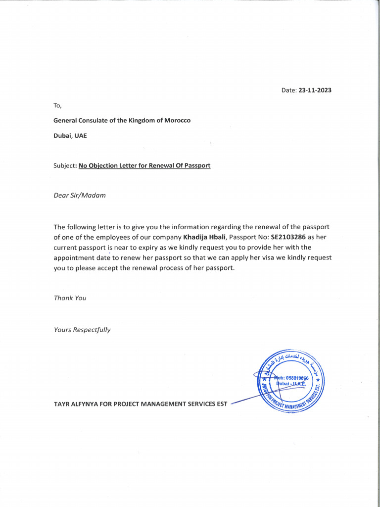 No Objection Letter For Passport Renewal PDF