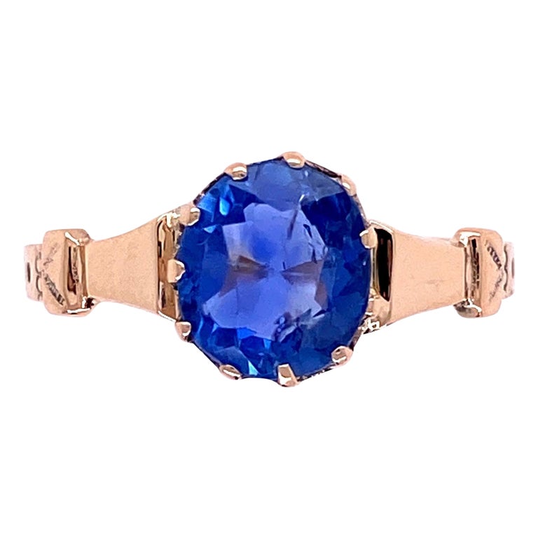 Vintage 1.51 Carat No Heat Blue Sapphire Antique Gold Ring Fine Estate