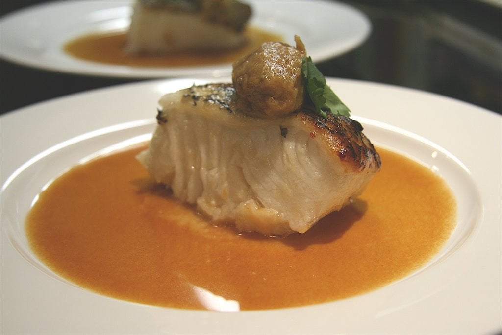 Roasted Chilean Sea Bass with Tomato and Lemon Grass Broth The
