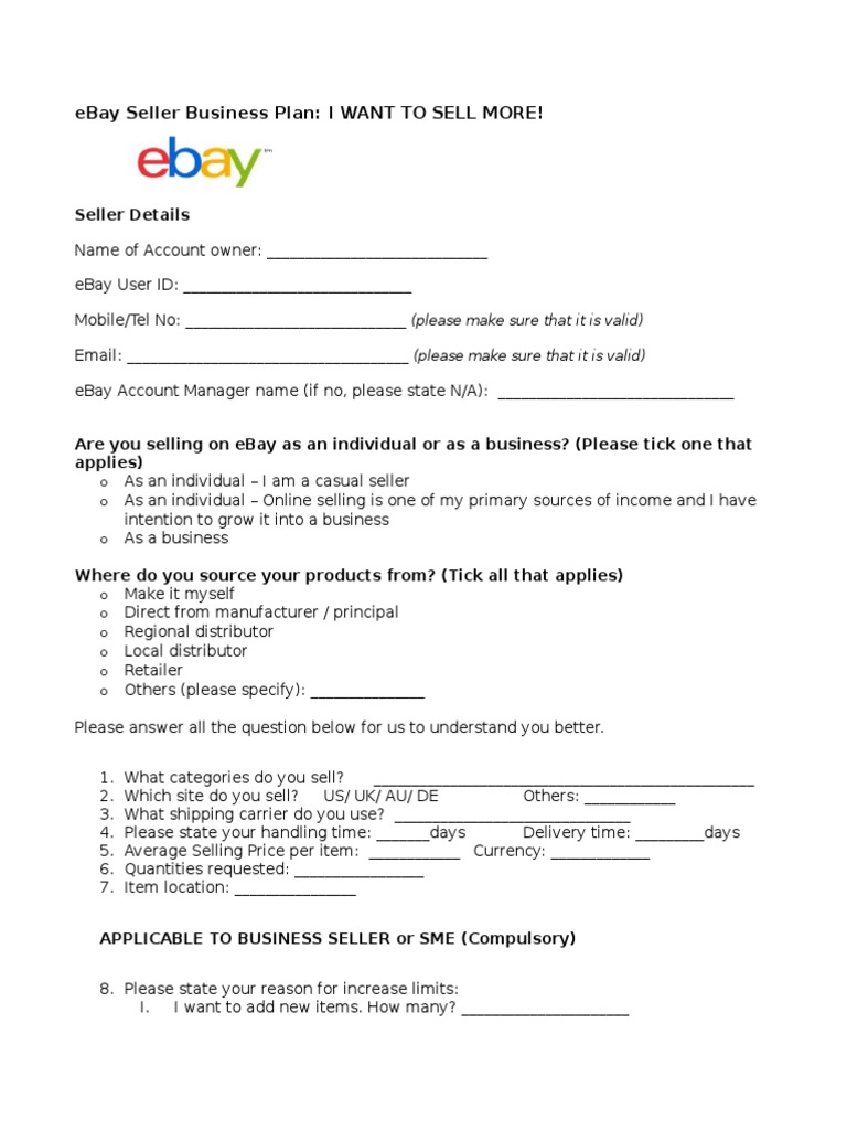 EBay Seller Business Plan PDF E Bay Sales