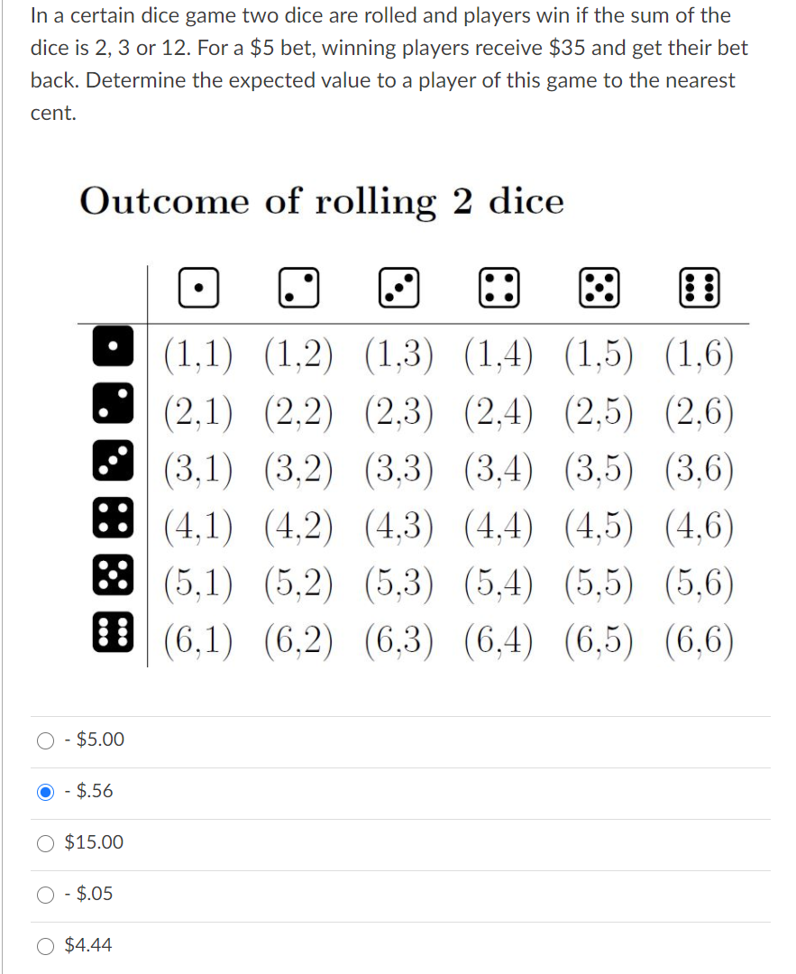 Solved In a certain dice game two dice are rolled and