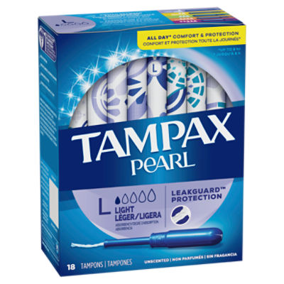 TAMPAX Pearl Light Absorbency Unscented Tampons, 18 count
