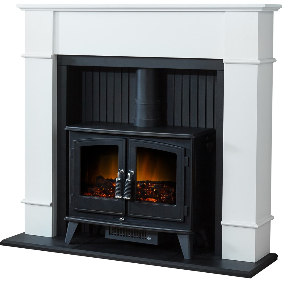 Adam Innsbruck Stove Suite in Pure White with Woodhouse Electric Stove Adam Black & White Electric Stove Suite The adam electric stove suite is a freestanding suite and is the perfect focal point for your room. A truly gorgeous stove suite, the contrast between pure white surround, and black back panel and hearth create a highly attractive backdrop. Adam oxford stove fireplace in pure white with aviemore electric stove in black, 48 inch A truly gorgeous stove suite,. Adam Black & White Electric Stove Suite.