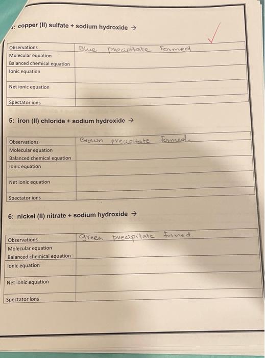 Solved copper (II) sulfate + sodium hydroxide → Blue