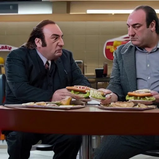 Saul Goodman and Tony Soprano having lunch at Stable Diffusion