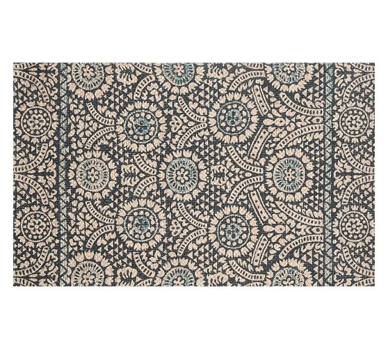 Sunny Printed Natural Fiber Rug Blue Pottery Barn