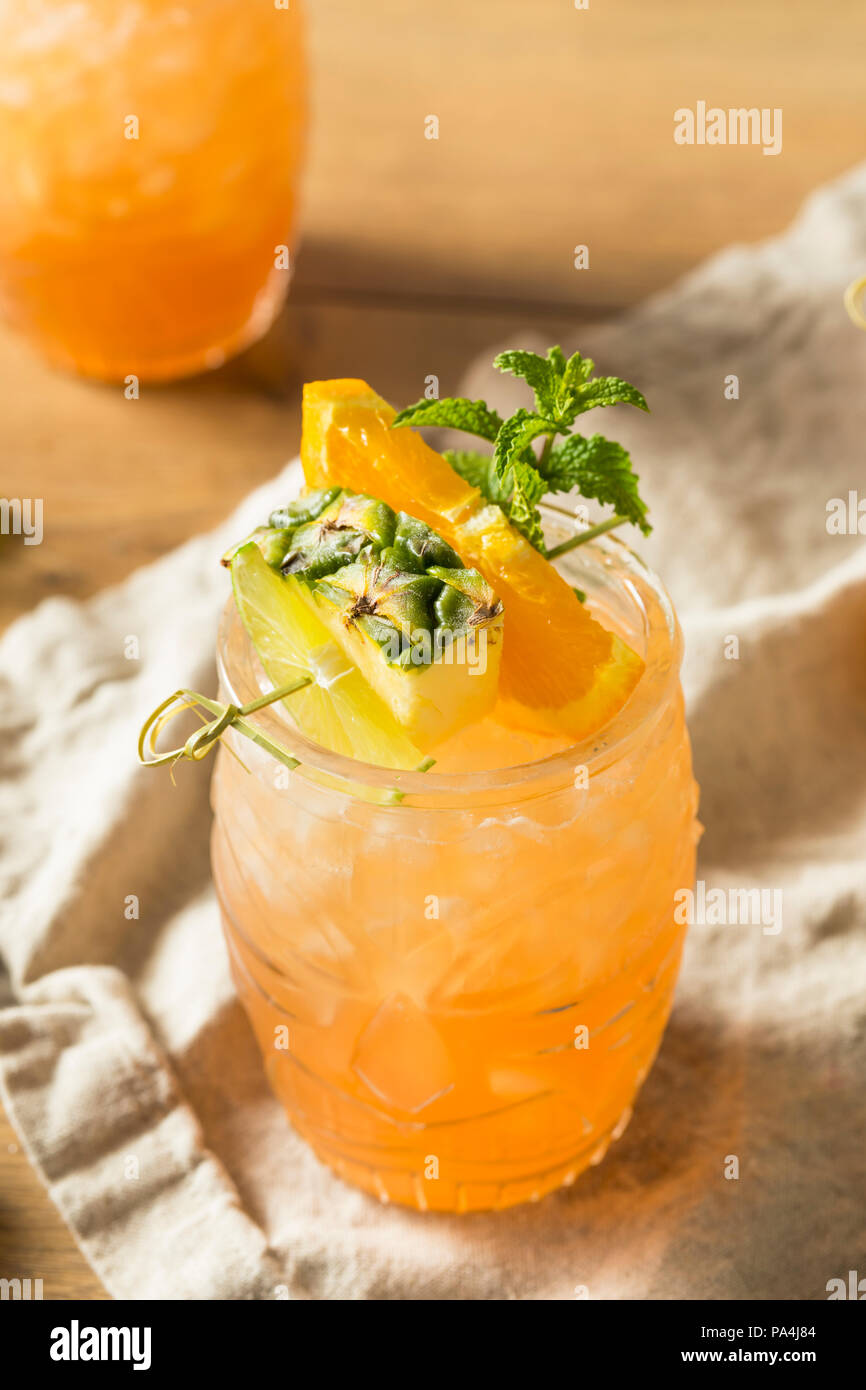 Refreshing Summer Tiki Cocktail Drink with Rum Lime and Pineapple Stock