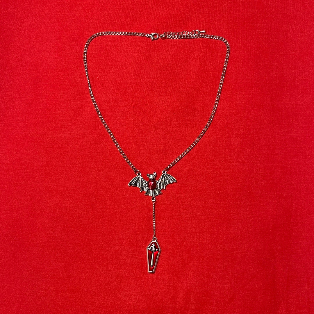 Red Coffin & Bat Rosary Dracula Style Goth Gem Bead Silver Etsy