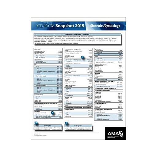 AMA ICD10 Snapshot 2015 Coding Cards; Obstetrics/Gynecology Staples