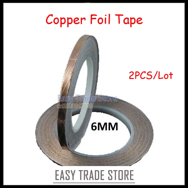 2PCS 6mm*30M Single Adhesive Single Electric Conductive Copper Foil