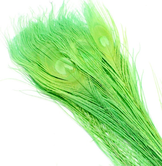 Lime Green Peacock Feathers. 5 Dyed Green Bird Feathers.
