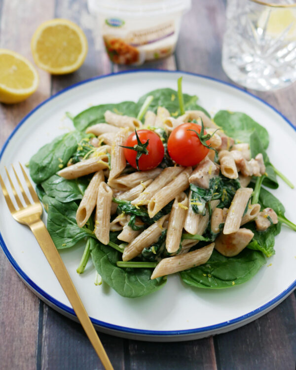 Pasta met spinazie roomsaus zonder zuivel of lactose HealthiNut