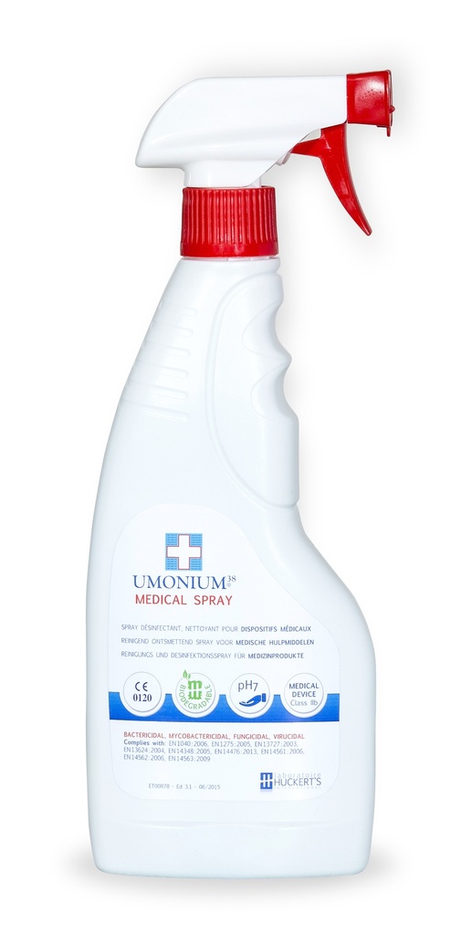 UMONIUM 38 Medical Spray Disinfettante 500 ml Huckert's Umonium Medical Spray umonium38 is the optimum disinfection solution. Effective and safe, it can be used on equipment without danger. free from aldehyde, peroxide, and biguanide (cmr components), umonium38® medical spray is your best ally in preventing. Kills bacteria, mould and viruses in 1. la formule umonium 38® possède des propriétés tensioactives. umonium38 medical spray by renol is featured. Umonium Medical Spray.