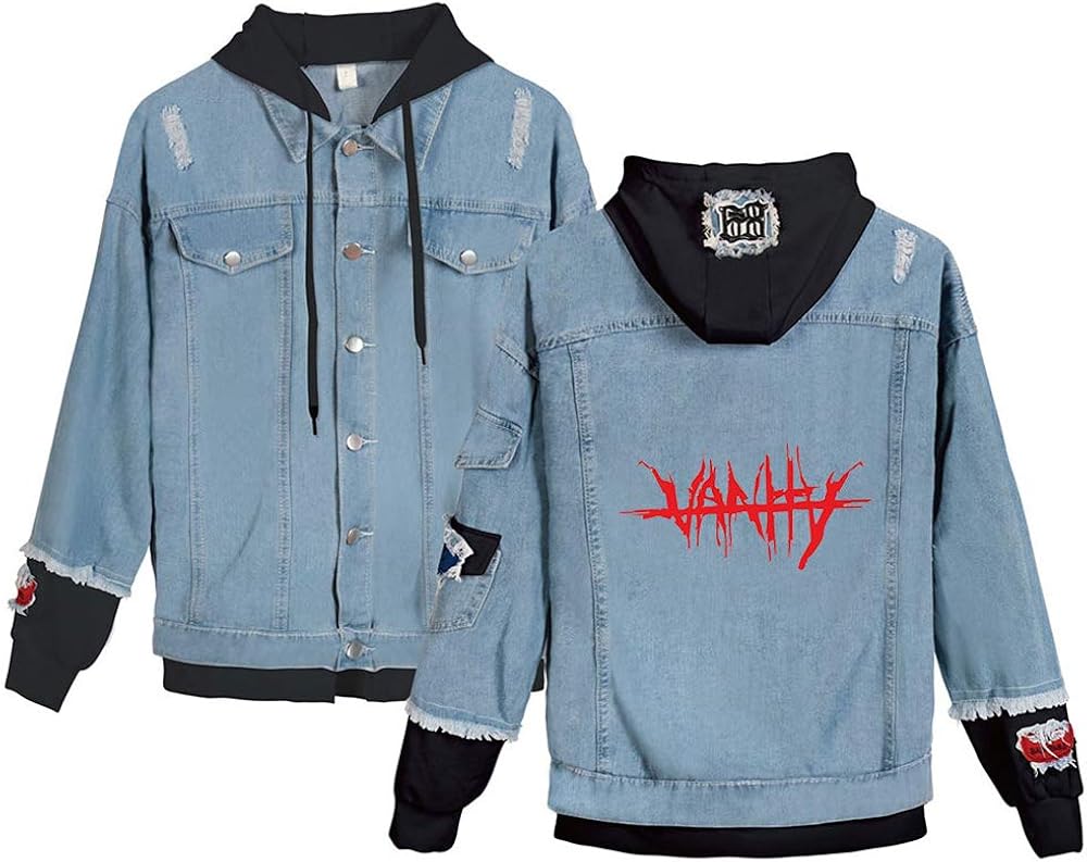Men Denim Jacket with Hoodie, Unisex Casual Juice Wrld Sweatshirt for