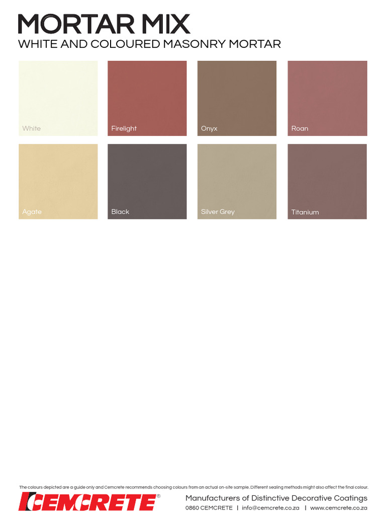 mortar_mix_colour_chart PDF Mortar Mix Colour Most commonly a pointing iron will be used giving a shallow dished look with the edges flush. If the mortar is gray, you might be able to get a close match with the premixed bags of mortar. The following steps are how to attempt an exact color match. we offer a free colour match service to find the perfect. Mortar Mix Colour.
