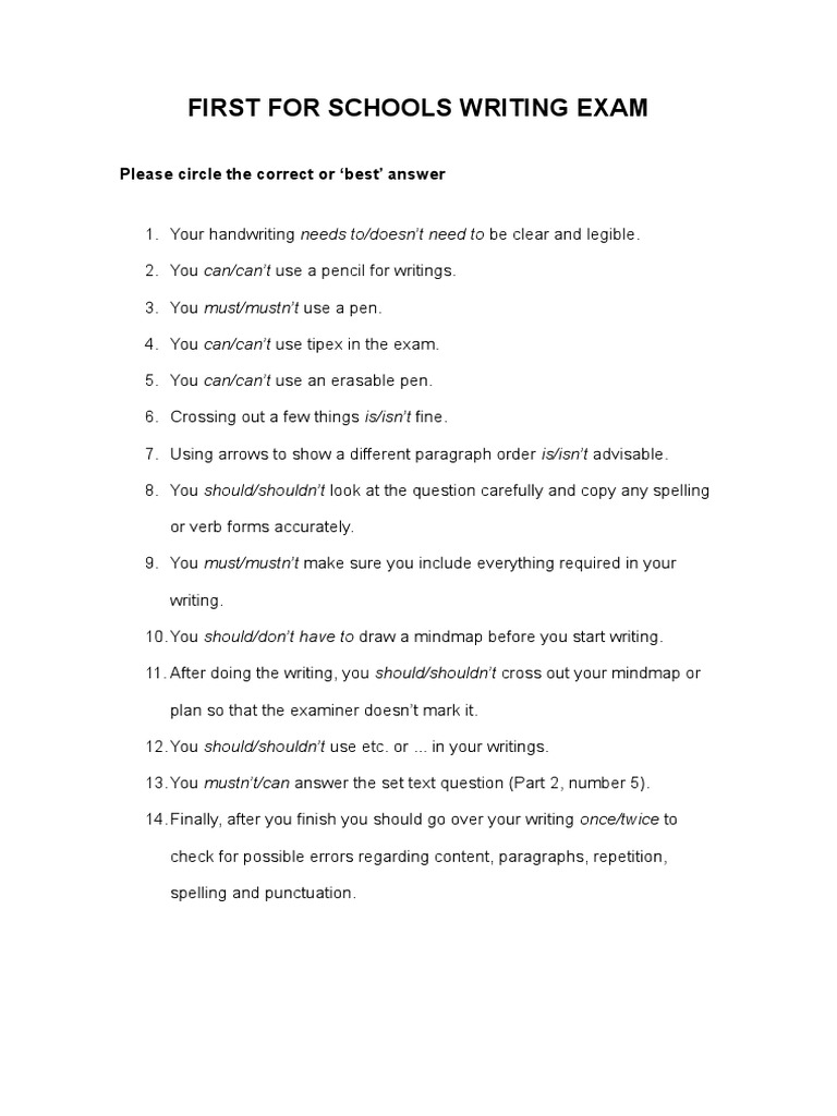 Dos and Don'ts Worksheet First For Schools Writing Exam PDF
