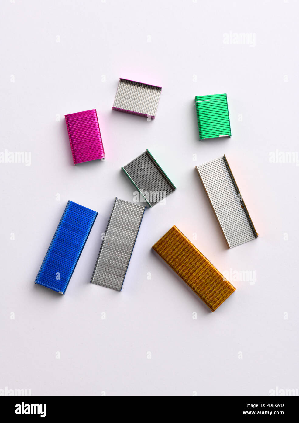 Colourful metal staples Stock Photo Alamy