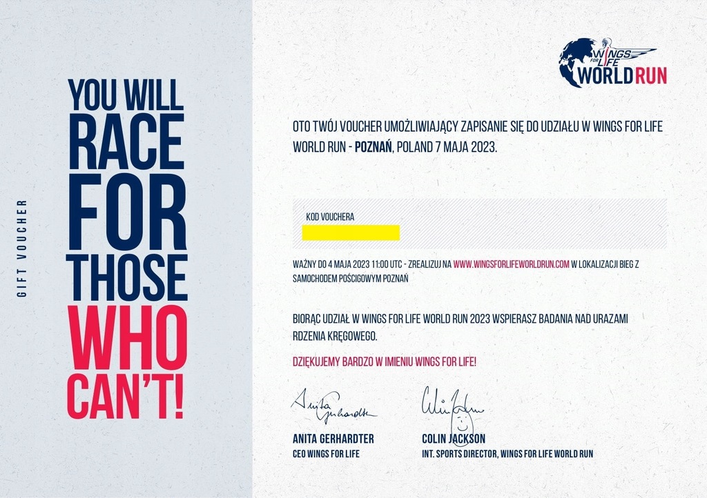 Voucher Wings for Life World Run Poznań 7.05.2023 13107761762