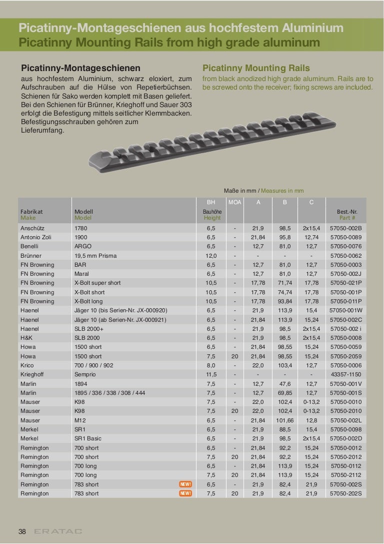 Technical data ERA TAC Picatinny Mounting Rails Optics Trade