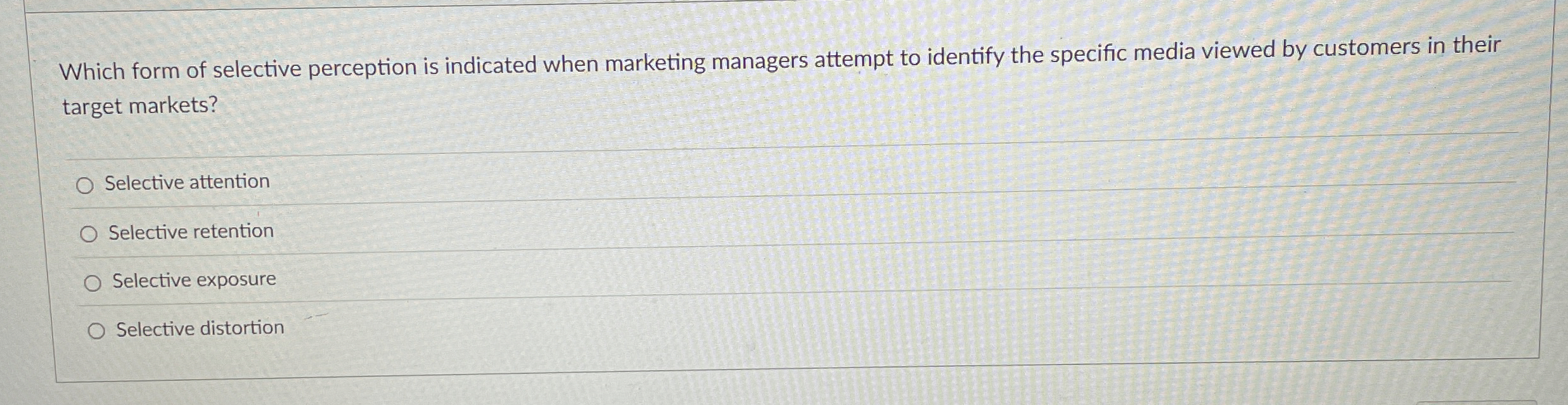 Solved target markets?Selective attentionSelective
