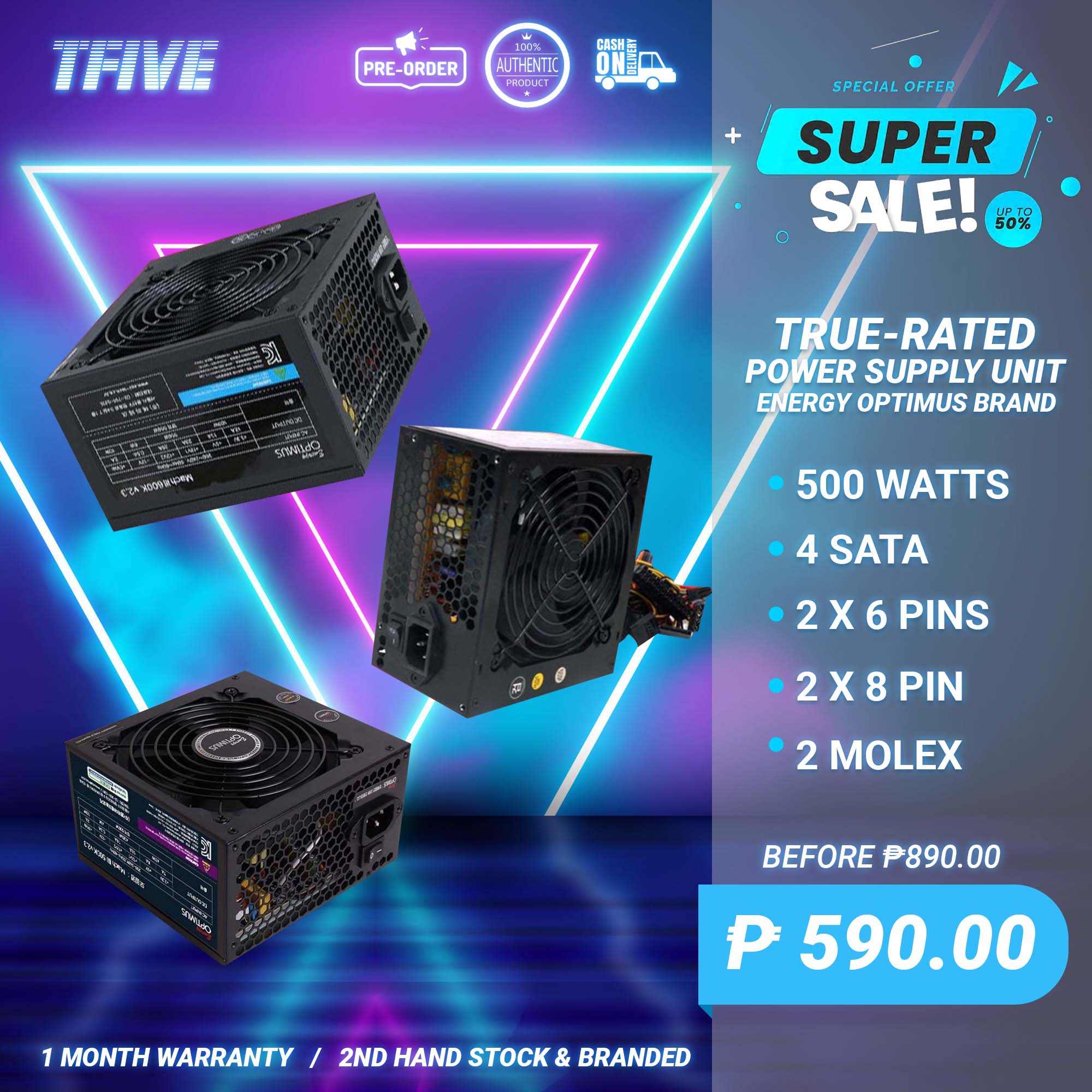TRUE RATED POWER SUPPLY 500WATTS OPTIMUS BRAND Lazada PH