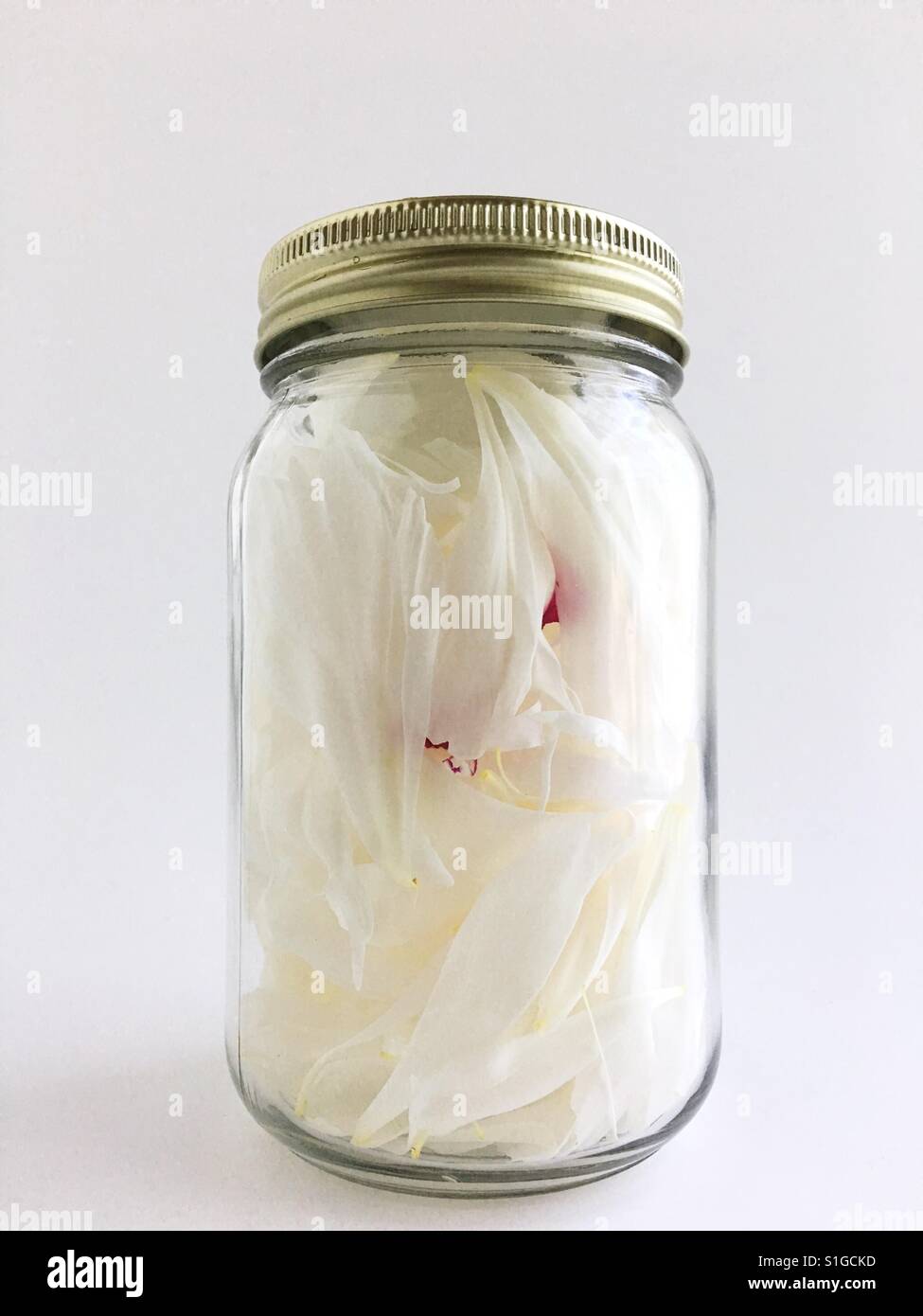 Peony flower petals in a closed jar Stock Photo Alamy
