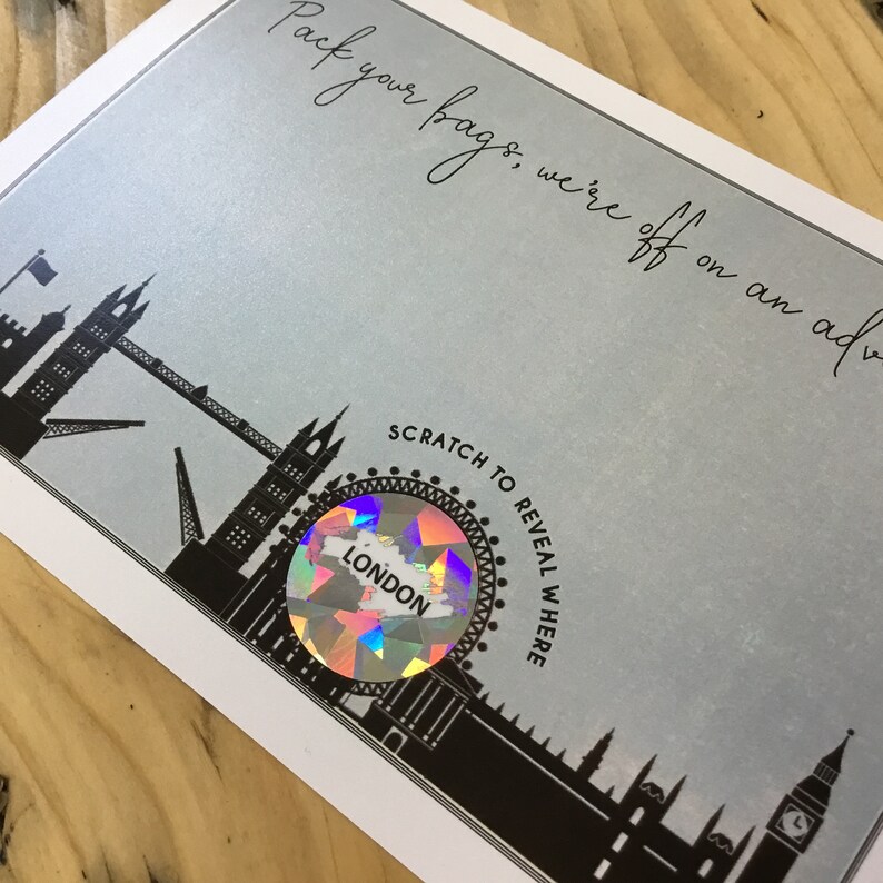 Scratch off Surprise Trip Card. Travel Card. LONDON Holiday Etsy Scratch Cards Travel completely personalised for your trip, printed on smooth quality white 300gsm card stock and hand foil ⭐️surprise holiday tickets ⭐️the perfect way to gift. share your vacation plans in a unique way this year with a personalized scratch off card! check out our scratch travel card selection for the very best in unique or custom, handmade pieces. Scratch Cards Travel.