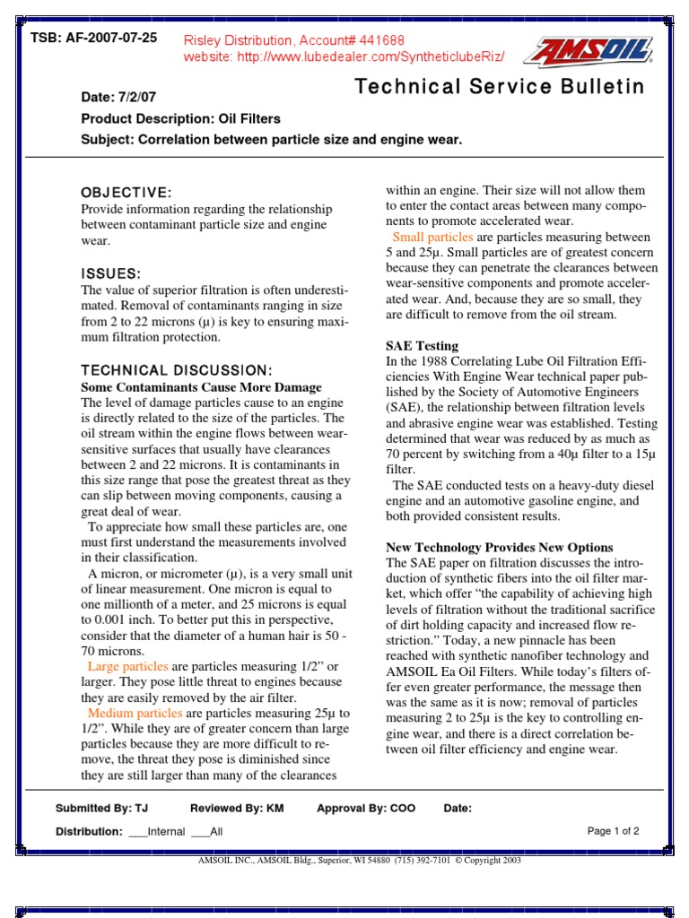 TSB Oil Filter Particle Size PDF Filtration Wear