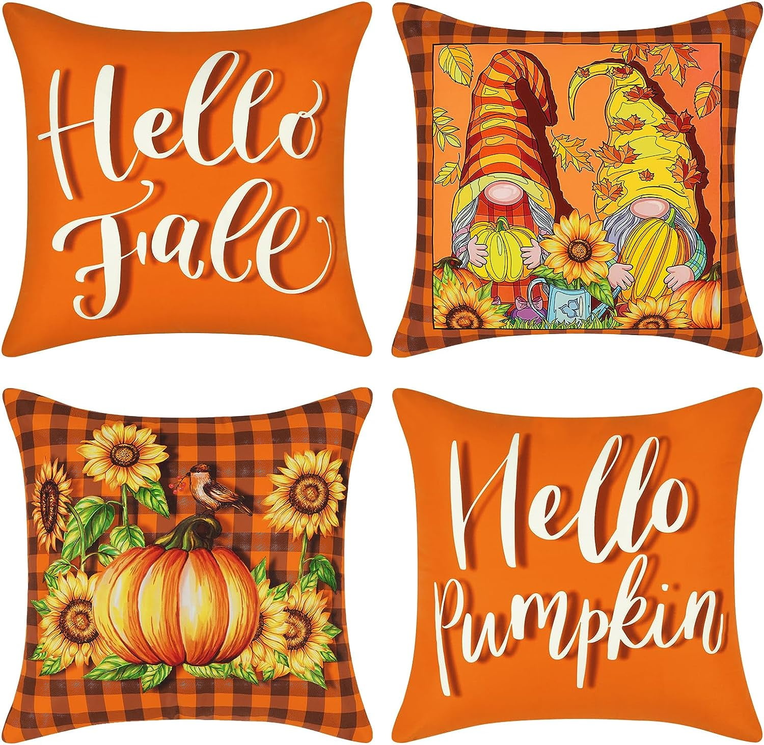 DIYDEC 4 Pack Fall Pillow Cover, 18×18 Inch Orange Buffalo Plaid Pumpkin Maple Leaf Throw Pillow Cheap Fall Pillow Cases Check out our fall pillow covers selection for the very best in unique or custom, handmade pieces from our throw pillows shops. Autumn flowers and mushroom pattern cushion covers, fall dry leave pillowcase, autumn trees pillow, autumn pumpkin. Featuring watercolor pumpkins, turkeys, and autumn harvest themes, these decorative throw pillow cases are perfect for celebrating. Fall bird and dried theme. Cheap Fall Pillow Cases.