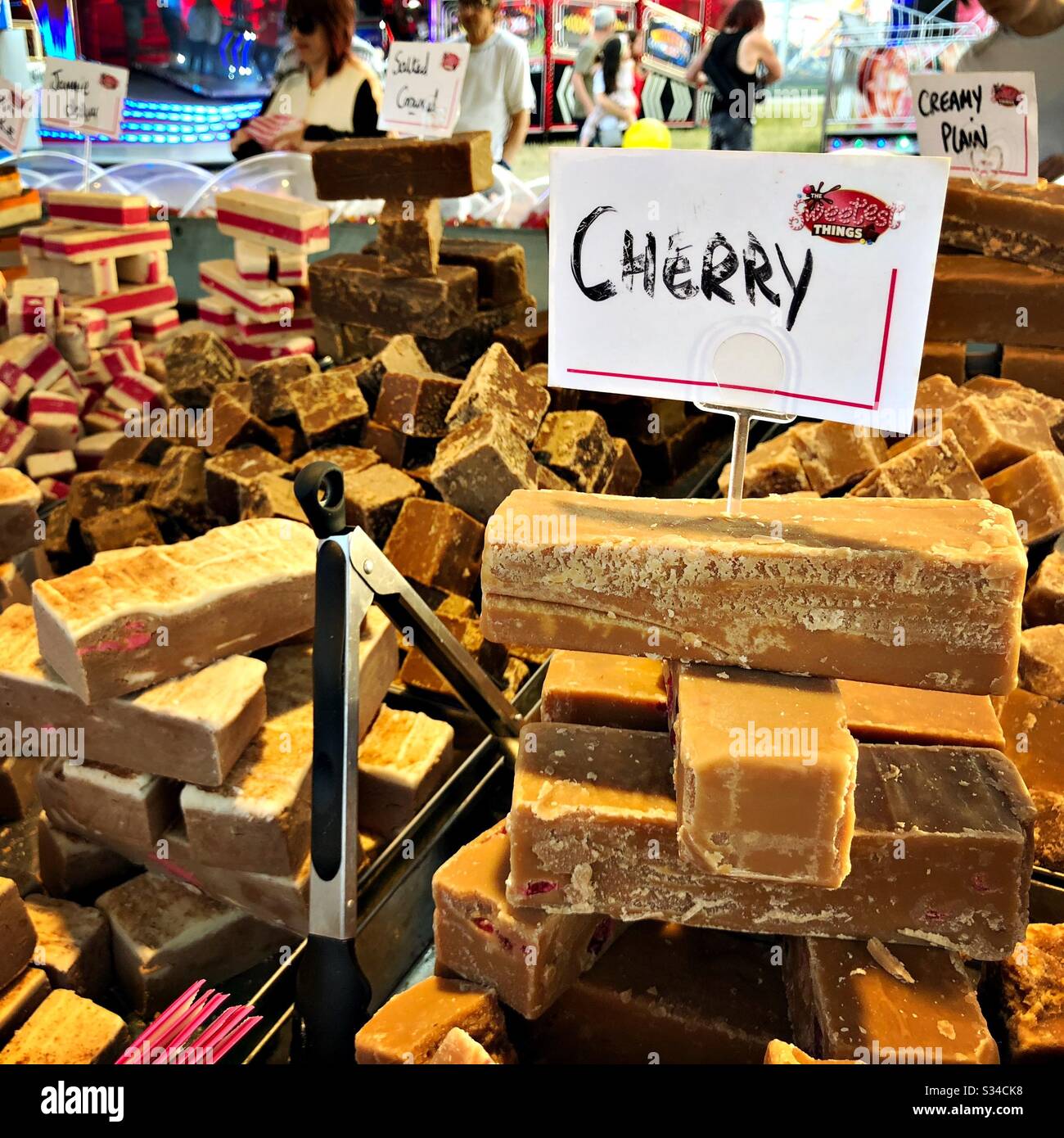 Cherry flavoured fudge for sale on a market stall Stock Photo Alamy