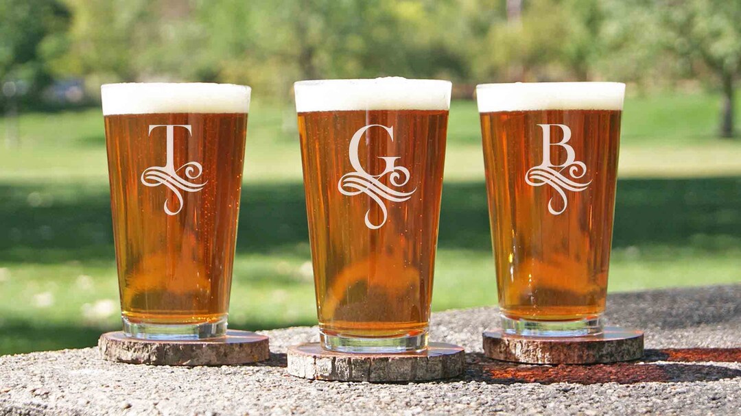 4 Beer Glasses Monogrammed Pint Glasses Etched Glass Monogrammed Pint Glasses Check out our monogrammed pint glass selection for the very best in unique or custom, handmade pieces from our pint glasses shops. Check out our monogrammed pint glasses selection for the very best in unique or custom, handmade pieces from our pint glasses shops. Check out our monogramed pint glasses selection for the very best in unique or custom, handmade. Monogrammed Pint Glasses.