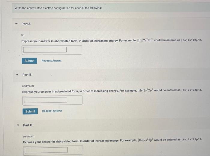 Solved Write the abbreviated electron configuration for each