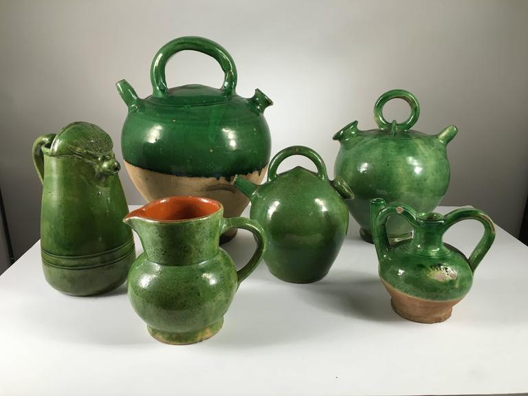 Collection of Green Provencale Pottery, French, 19th and 20th Century
