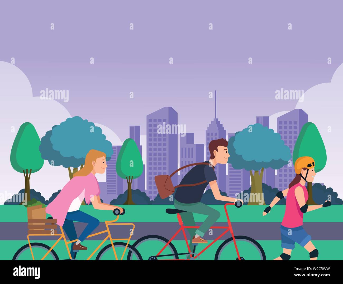 People with bikes and skates Stock Vector Image & Art Alamy