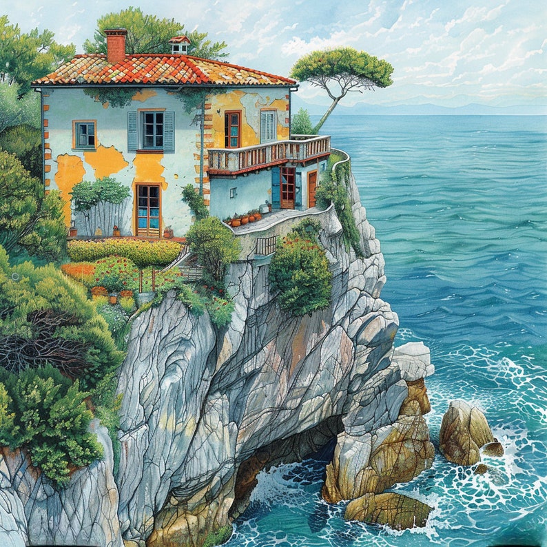 House on Cliff by the Sea Ocean Clipart Bundle, 16 Highquality JPG