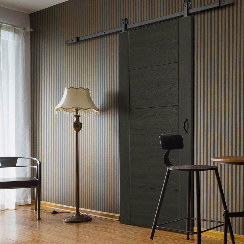 Top Mounted Black Sliding Track & Door Vancouver Smoked Oak Flush In