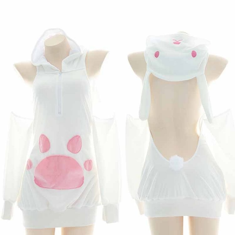 Japanese Cute Cat Paw Hoodie Rabbit Zipper Lingerie Set SP16772