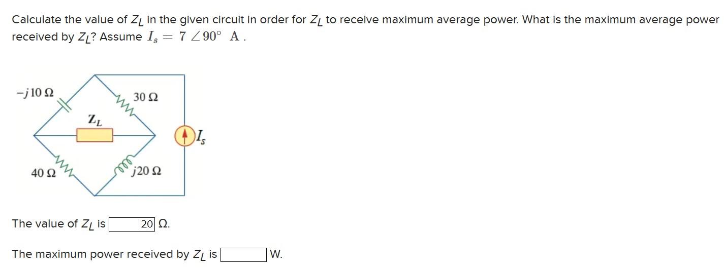 Solved Calculate the value of ZL in the given circuit in