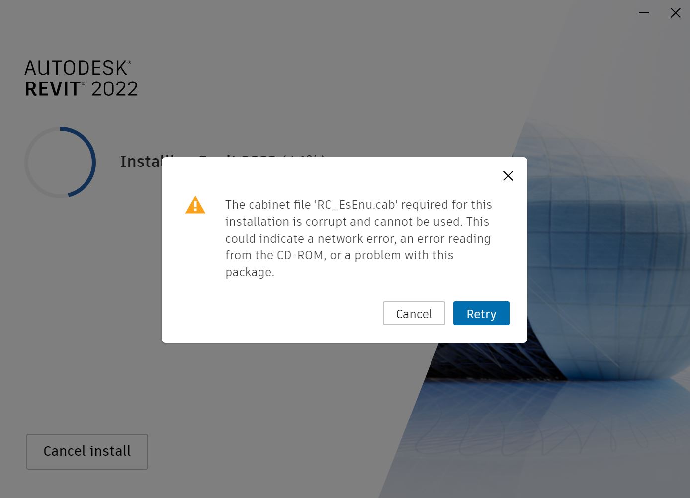 "The file required for this installation is corrupt and cannot
